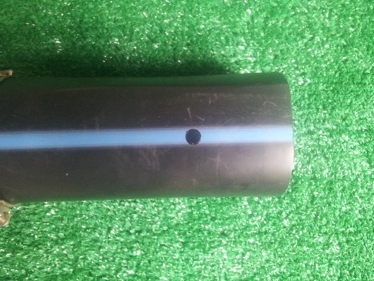2.用合适口径的打孔器在PE薄壁水带上打孔。