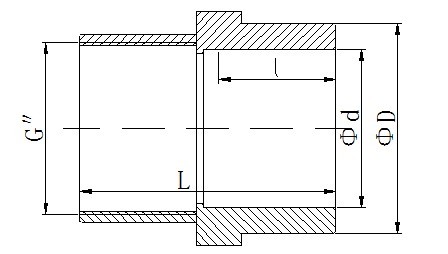 其中“G″”表示管件丝口直径,“L”管件长度,“l”表示承插口长度,“Φd”表示管件公称内径,“ΦD”管件公称外径,1.0MPa=10公斤
