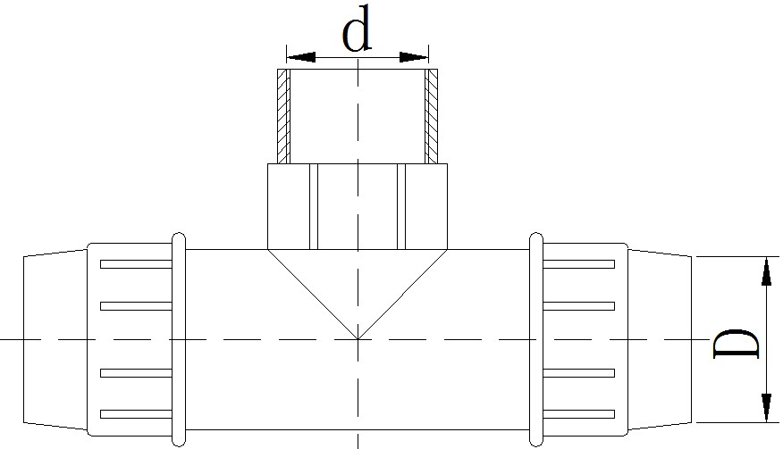 其中“ΦD”表示管件主管口公称内径,“Φd”表示管件支管口丝口直径,1.0MPa=10公斤